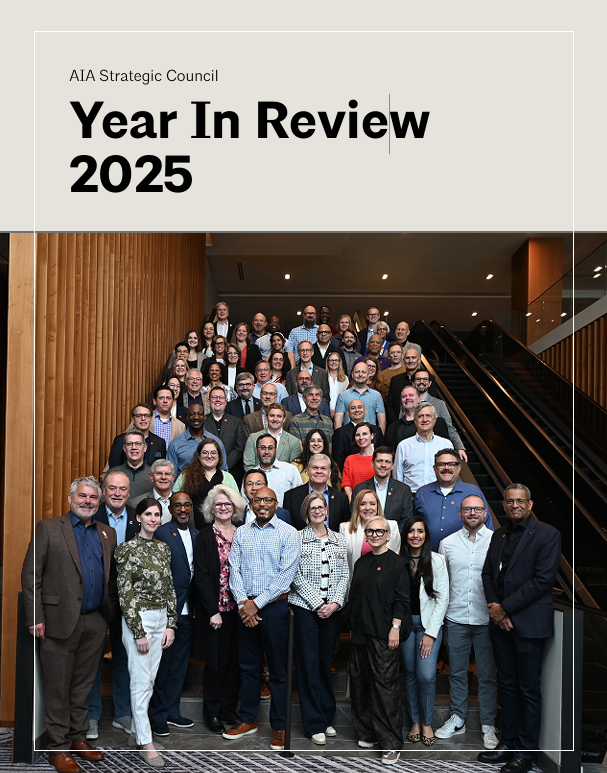 We are proud of the work of the 2025 Council and know it will continue to drive meaningful progress within the AIA. We are deeply appreciative of the dedicated Councilors and liaisons who offered their insights and invested their time. Together, these collective efforts reflect a year of innovation, collaboration, and forward momentum that position the Council as a catalyst for meaningful change across the Institute and the profession.
